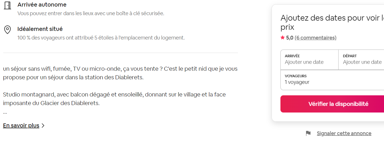 Durant la période hivernale : les skis, planches de surf ou autre matériel de glisse ne peuvent pas être apportés et /ou entreposés dans la résidence, encore moins dans le studio ou sur le balcon (risque de dégâts involontaires).