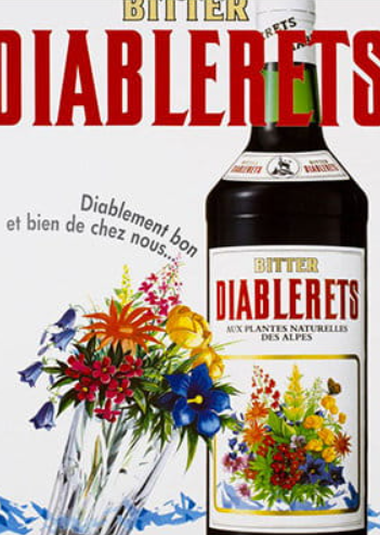 Fraîcheur des plantes naturelles des Alpes, touches sucrées et saveurs amères, on apprécie autrefois les vertus digestives et curatives du Bitter des Diablerets. La marque connaît un pic de popularité dans les années 50 et devient composant de la recette des célèbres « Bouchon vaudois ». Boisson célèbre dans les stations de ski, le Bitter des Diablerets s’est offert ces dernières années une nouvelle jeunesse avec le retour en grâce des bitters.
