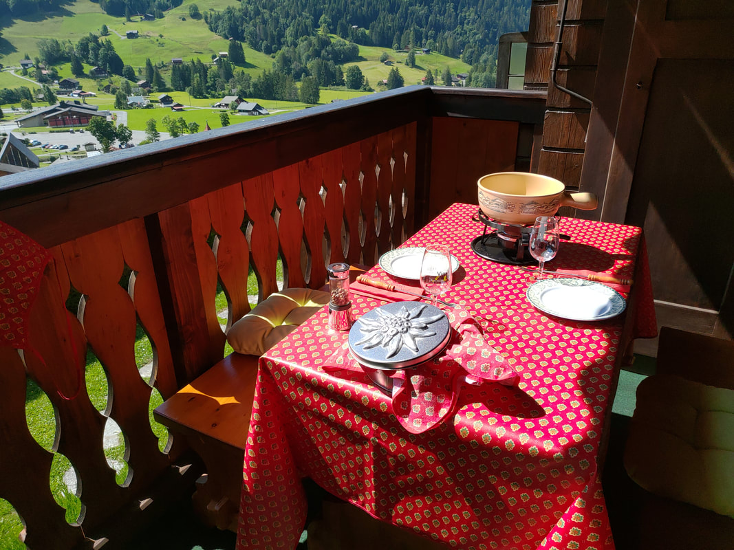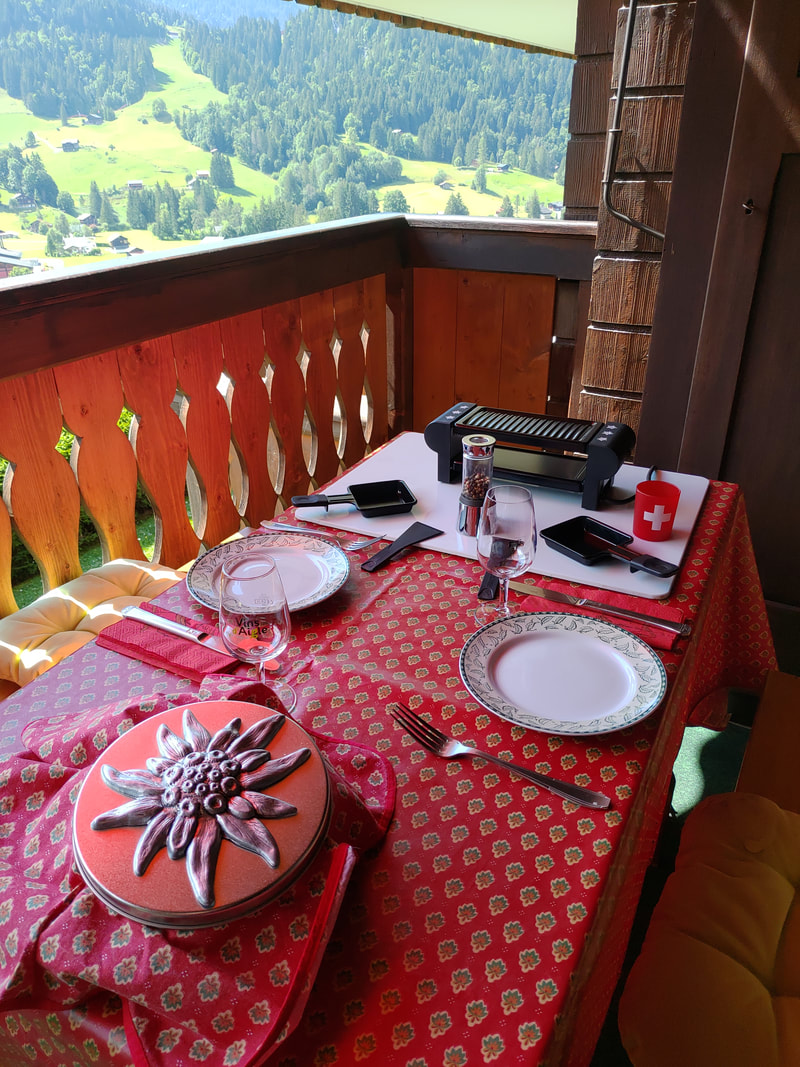 L’été le matériel pour une raclette ou fondue sur le balcon peut vous être fourni sur demande préalable.