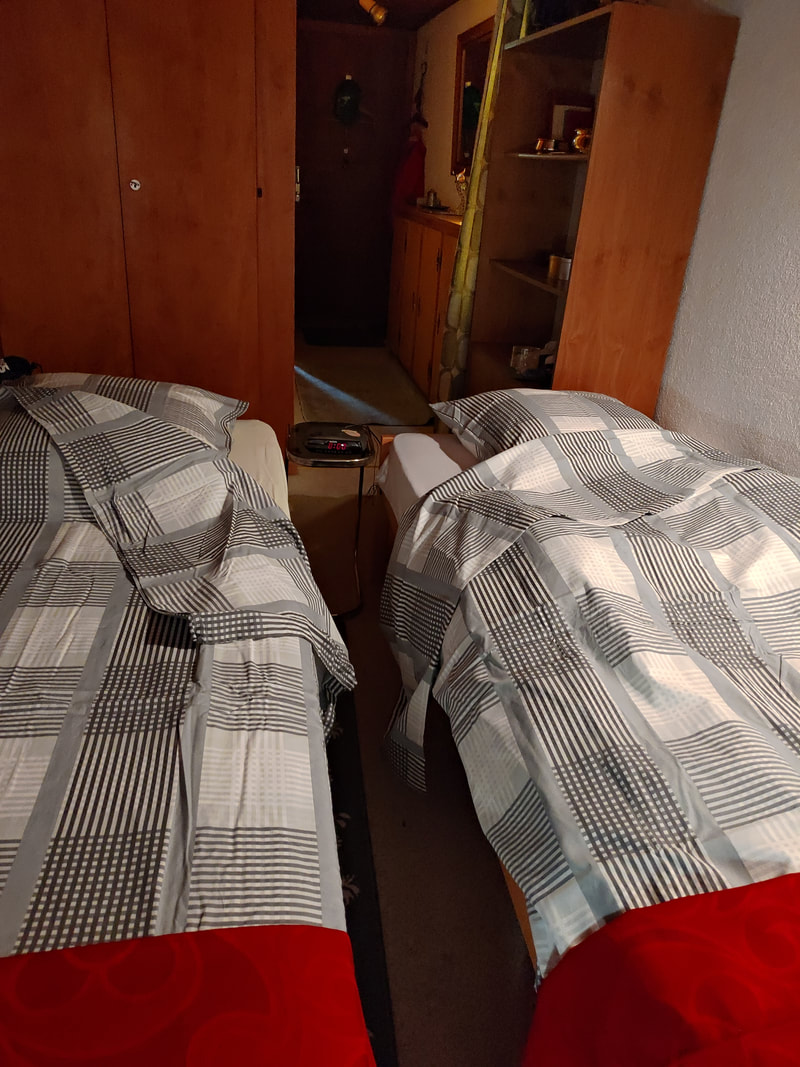 Le studio est très confortable pour 1 personne. Il convient aussi à 2 personnes, couple avec les 2 lits collés ou 2 connaissances avec espaces entre les lits. Cependant pas de lit supplémentaire ou berceau, l’espace ne le permet pas, car les 2 lits simples sont grands (90cm X 200cm) et une fois ouverts avec une surface de 180x200cm, il devient difficile de se déplacer sans endommager les autres meubles.