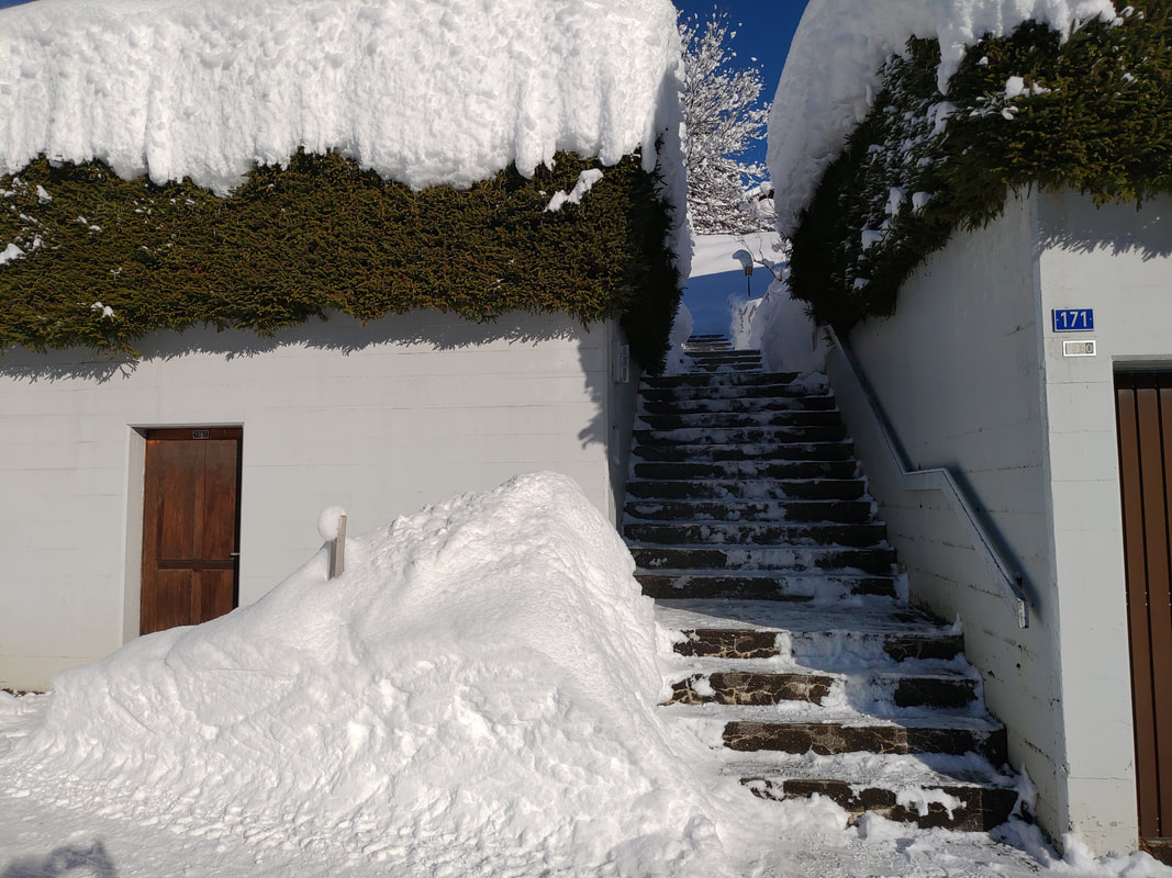 Il y a aussi un parking plus grand à 150 m plus bas du studio. C’est le parking dans l’ancienne gare de départ du télécabine d’Isenau. Vous le voyez du balcon. là, vou spouvez parquer votre véhicule pour toute la durée de votre séjour, c’est gratuit.